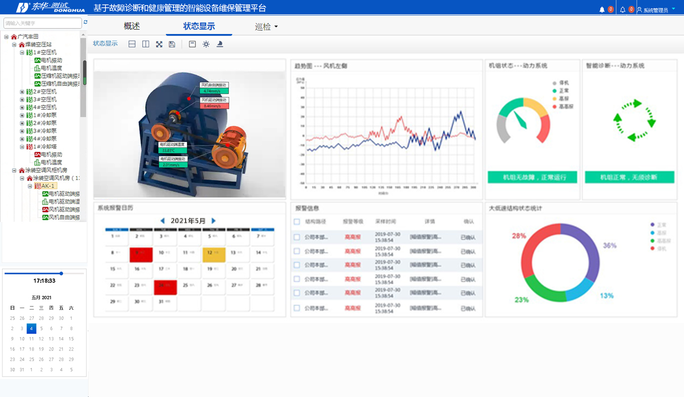 趋势图、波形图、频谱图、棒图、数字表、仪表盘、图片、模型、视频、表格、报警日历、状态统计