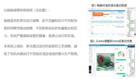 项目介绍 本项目是对江铃汽车股份公司小蓝分公司涂装厂的24台空调室体的送风风机设备的振动情况进行实时在线监测,实现机组故障预警与分析功能,技术人员通过软件监测系统,可快速判断出机组的故障来源,为风机的设计、运行和检修提供准确、可靠的依据,避免计划外停机及恶性事故发生。项目实施实施效果