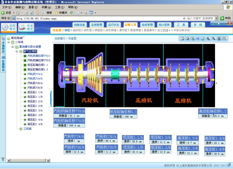 系统纳入中石油信息网,在中石油内部网上的客户端都可以远程浏览全厂设备的运行状态,同时在内部网上实现远程专家会诊。
