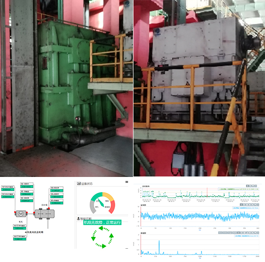 监测参数:振动+包络测点位置:电机自由侧垂直、电机负荷侧垂直、齿轮箱输入轴垂直/轴向、齿轮箱输出轴垂直/轴向、齿轮箱上输出轴水平/轴向、齿轮箱下输出轴水平/轴向、 热锯输入端垂直、热锯输出垂直。硬件配置采集系统:3台DH5973+2台DH5970+CMA3.0+DHAPP传感器:68个1A946E压电式传感器典型现场:实施效果:监测热锯机组振动及时发现锯片严重磨损并更换。