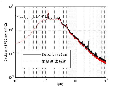 这一步采用的校核方法是:把不同系统采集到的原始数据信号(速度信号)分别输入到DATA Physics进行分析,在同一张图中画出相应的位移功率谱密度曲线,通过比较这两条曲线的重合度来判定所获得的原始数据是否可靠。