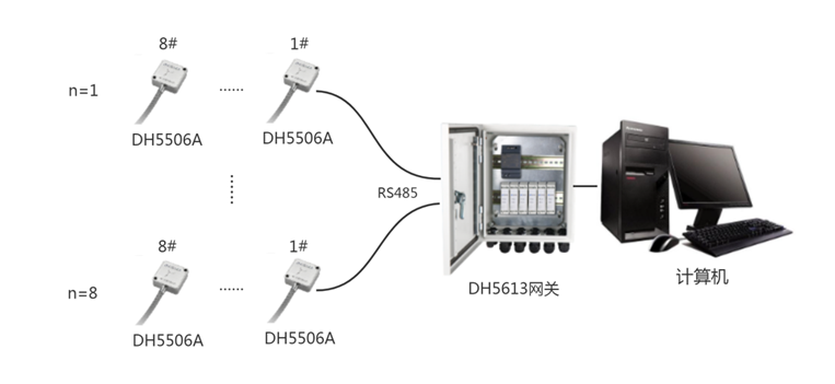 3.1.1 配套DH5613 网关,直流供电,每台支持4/8/16个端口(每个端口可接8只DH5506A),可通过交换机无限扩展;