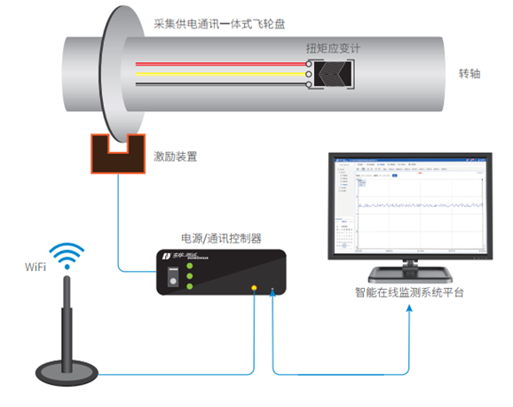 系统有无线供电单元和无线采集单元组成,通过旋转轴系的扭矩和轴功率等物理量的测量,准确预测旋转机械设备轴系的弯曲、疲劳裂纹、断裂等常见故障。